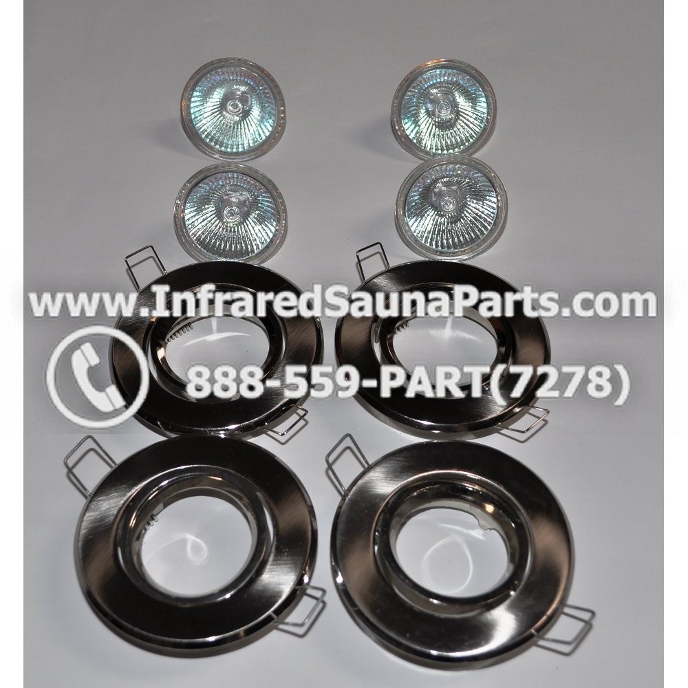 COMPLETE LIGHT ASSEMBLY 4 HOUSING IN SILVER FINISH WITH 4 BULBS 220V / 240V